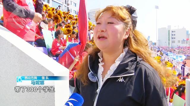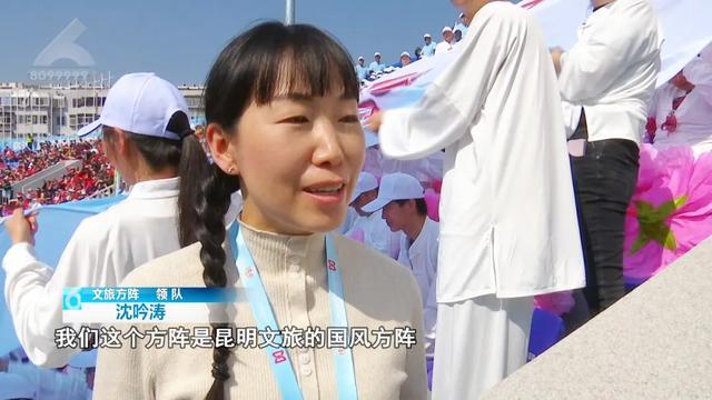 西山方阵领队 马妮娜:“这次我们代表西山方阵,带了 300 个学生,把我们的特色舞蹈、霸王鞭,还有烟盒舞展现出来,我们在为昆明队加油喝彩。”