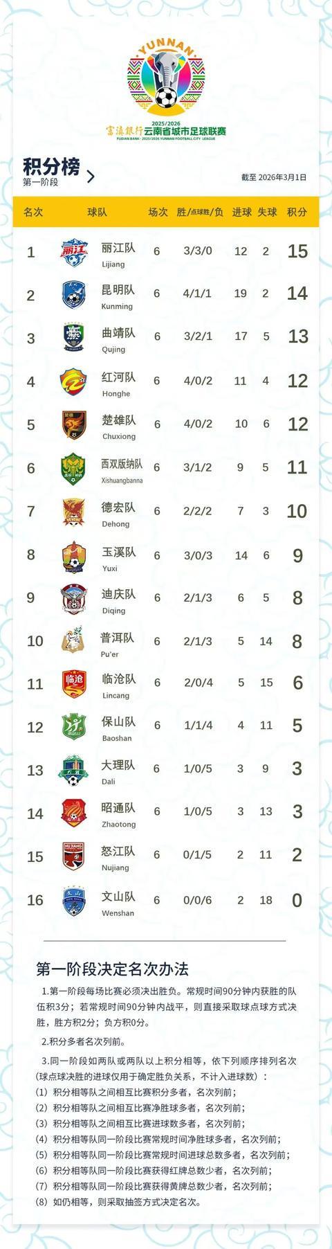 此轮过后,昆明队以5胜1负积14分的战绩跃居积分榜第二位。下一轮昆明队将于3月7日客场对阵强敌曲靖队。